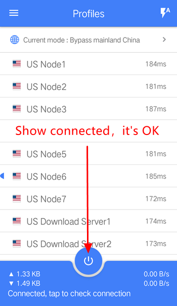 Step 3:Click to select the node on the server list and click the icon button to connect to use