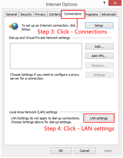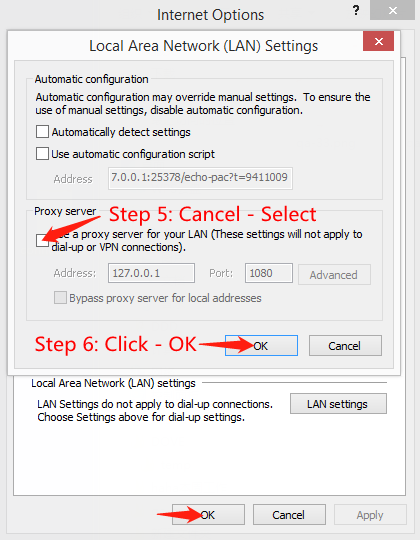 Step 3: Uncheck - Use proxy server for LAN, click - OK