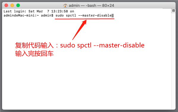 第2步:在终端程序里输入:系统开机密码,然后按回车键