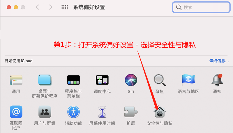 第1步:打开 - 系统偏好设置,点击 - 安全性与隐私