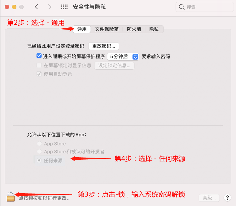 第3步:点击打开 - 锁,输入 系统密码 解锁