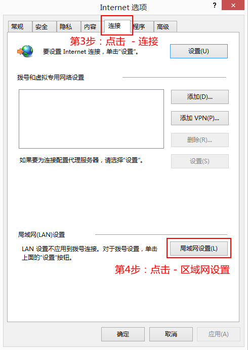 第2步:选择 - 连接,点击 - 局域网设置